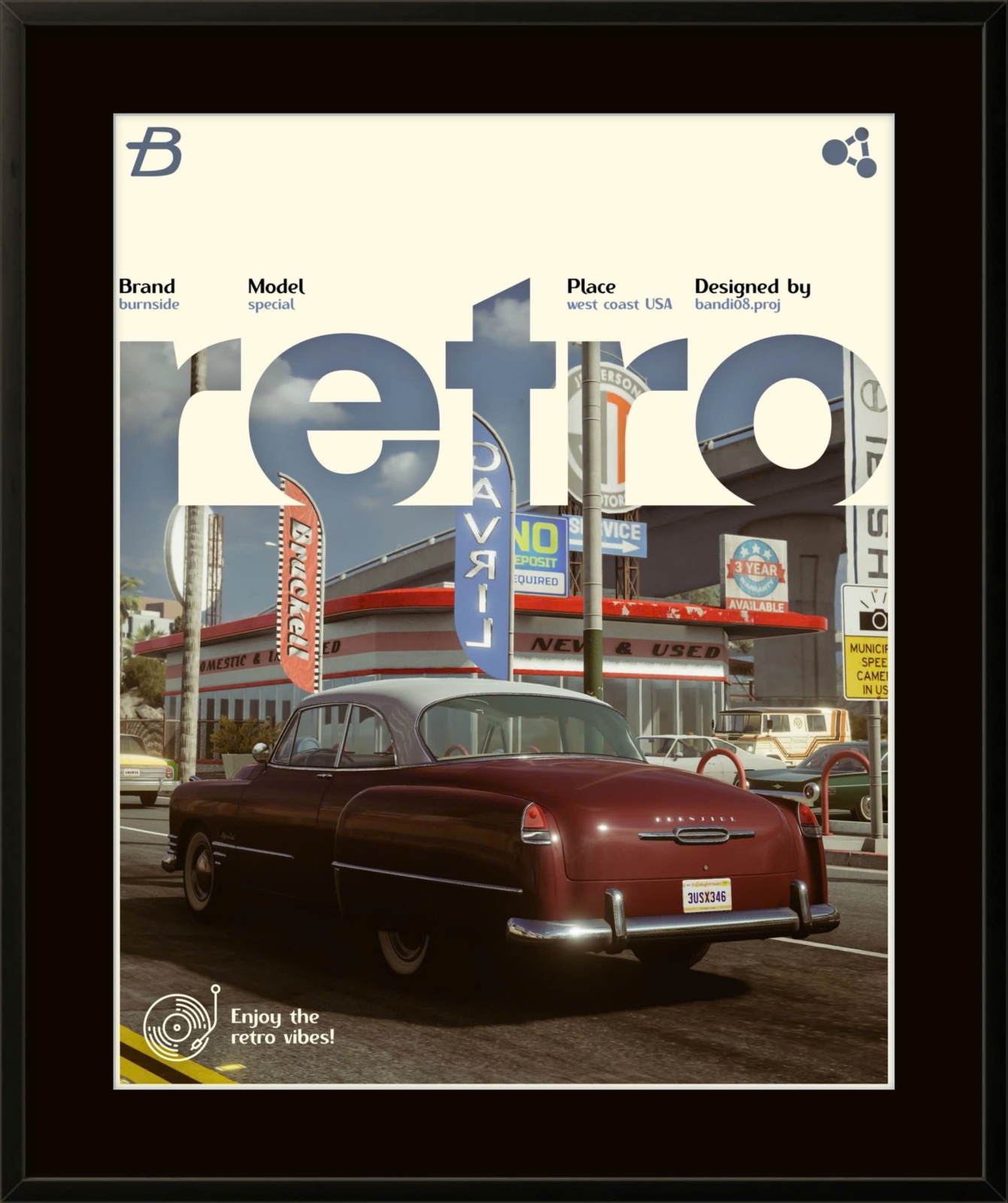 • Mô tả: Các bức tranh mô tả xe hơi thập niên 50-70, xe mô tô cổ điển (classic motorbikes), hay các mẫu xe biểu tượng như Ford Mustang đời đầu, Volkswagen Beetle, hay xe Vespa. Những bức tranh này lý tưởng để trang trí trong phòng làm việc phong cách cổ điển hoặc các quán cafe, bar mang hơi hướng retro.