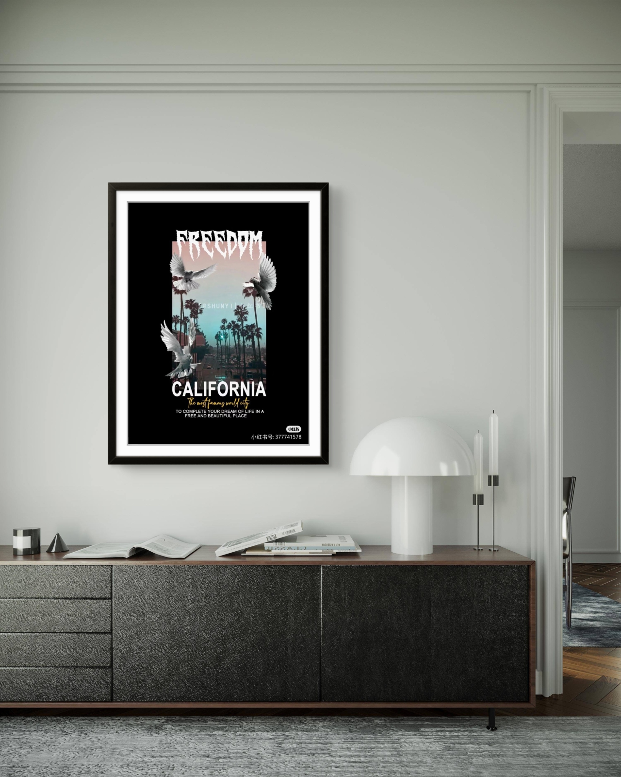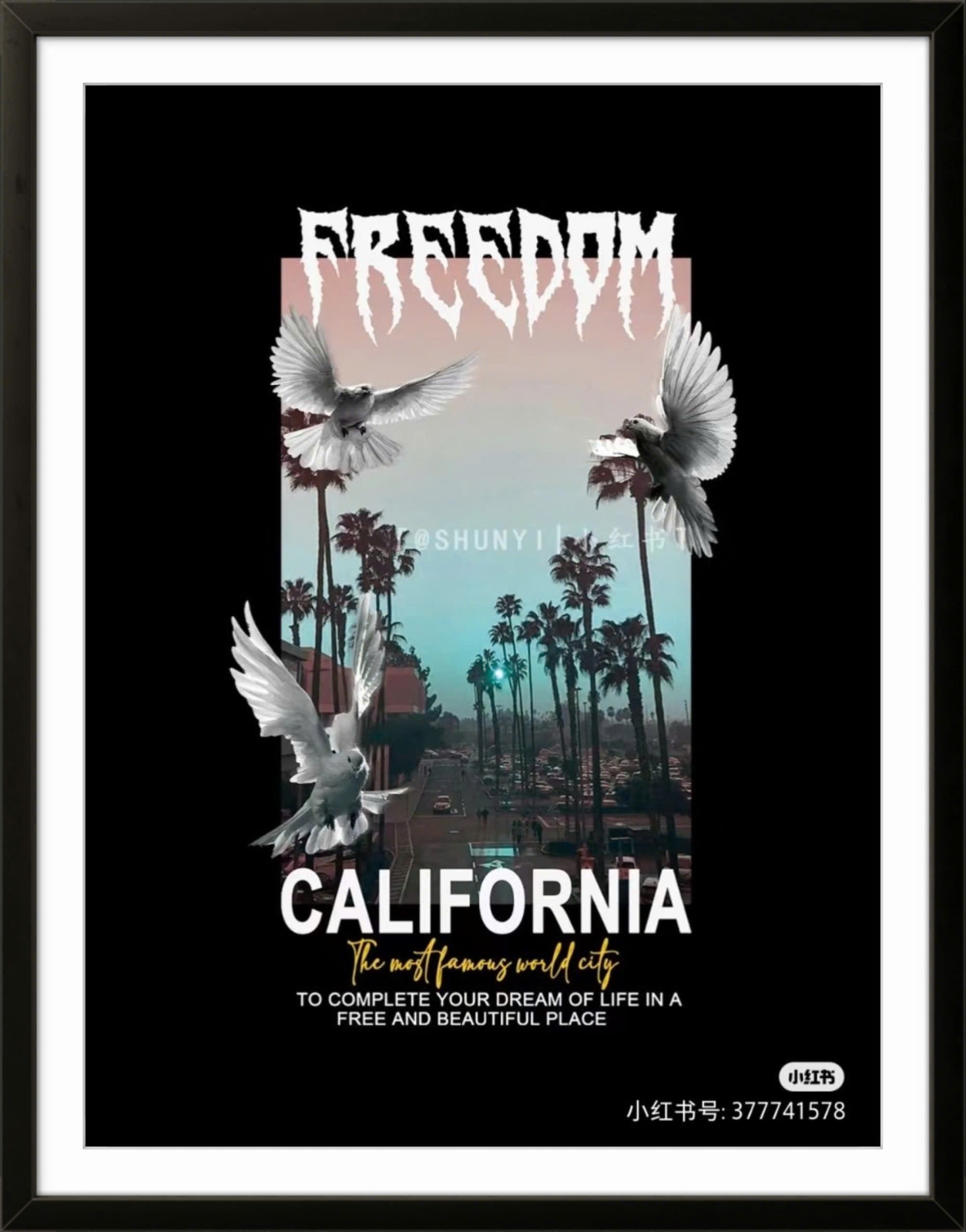 California – vùng đất của tự do, ước mơ và những khung cảnh bất tận, được tái hiện trong poster “FREEDOM – CALIFORNIA”. Với gam màu hoàng hôn ngọt ngào, hình ảnh hàng cọ trải dài và những cánh chim trắng bay vút, tác phẩm không chỉ là tranh treo tường mà còn là lời mời gọi bạn sống trọn vẹn với ước mơ. Đây là lựa chọn lý tưởng cho những ai yêu phong cách hiện đại, năng động và muốn mang hơi thở của miền Tây nước Mỹ vào không gian sống.